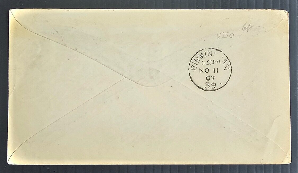 1907 United States 4c stamped Cover ties 2 stamps cd Boston-Birmingham