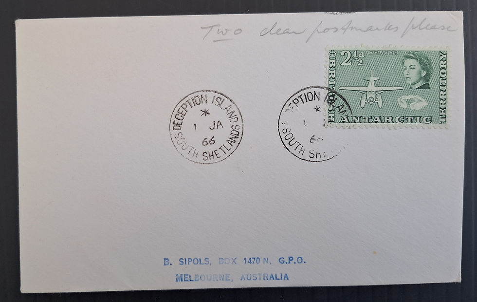 1966 British Antarctic Territory Airmail Cover 2 1/2d stamp cd Deception Island