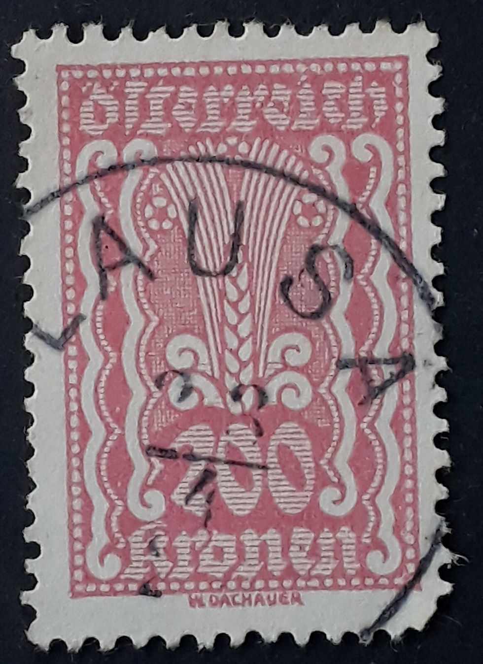c.1922 Austria 200Kr rose Ear of Corn stamp cancelled Lausa