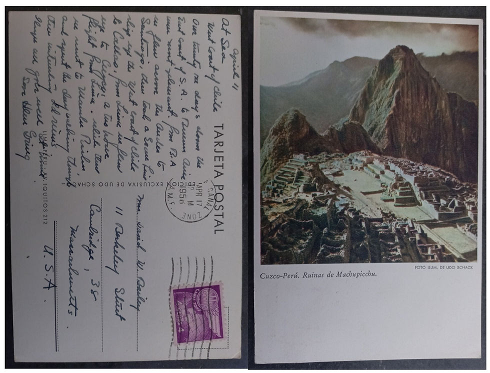 1956 Canal Zone Postcard-Cuzco-Peru ties 4c stamp cd Canal Zone
