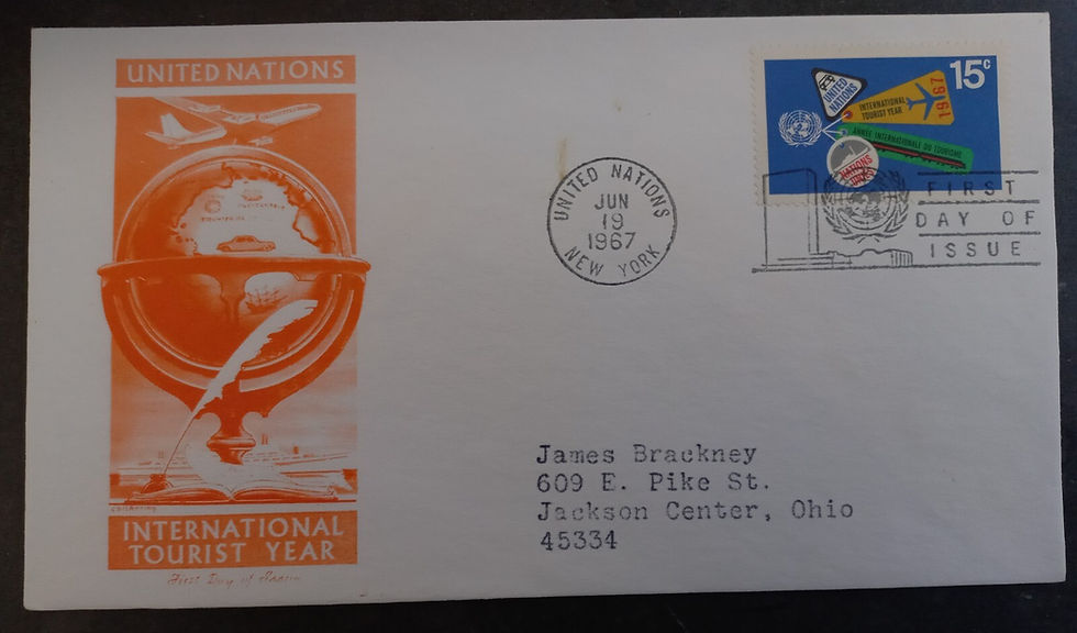 1967 United Nations Tourist Year FDC 15c stamp cd United Nations